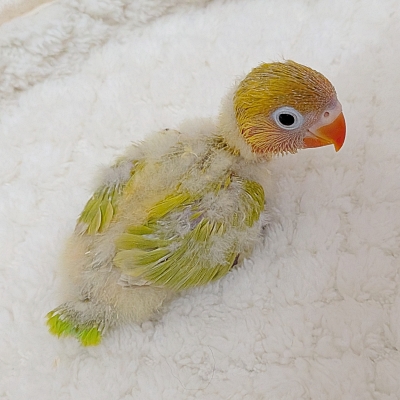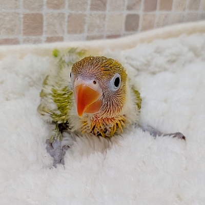ひまわり色の体とお顔のオレンジ色が、まるで「小さな太陽」みたいなヤマブキボタンインコ☆